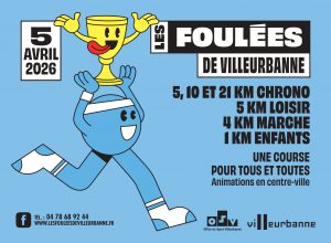 La 34ᵉ édition des Foulées de Villeurbanne se déroulera le dimanche 5 avril 2026 au départ du Cours Émile Zola. 6 parcours sont proposés dont 3 chronométrés : 21km, 10km, 5km et 3 loisirs : 5km, 4km marche et 1km enfant.