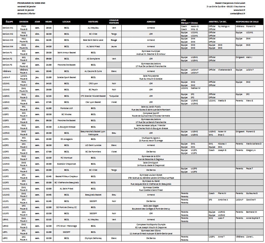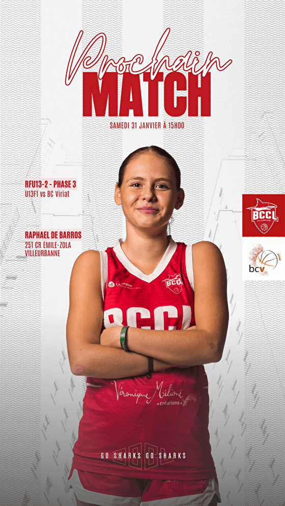 Prochain match le samedi 31 janvier à 15h00 au gymnase Raphaël De Barros, 251 cours Émile Zola, Villeurbanne.