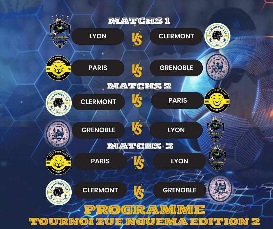 L’Association Sportive des Panthères du Rhône a l’honneur d’organiser la troisième édition du Tournoi ZUE NGUEMA, de 9h00 à 20h00.